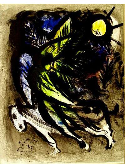 画暦: ヴィテヴスク(現在ベラルーシ共和国)のユダヤ人居住区に生まれる。少年のころから、シャガールは画家や詩人にあこがれ、日常的な風景が、後の作品の題材として登場していく。サンクトペテルブルクの美術学校に学び、23歳の時、パリに出て、アカデミー・ジュリアンに通う。ピカソと知合い立体派の感化を受けたが、やがて幻想を主題とする画風を作り、今ではシュールレアリストの一人として数えられる。ロシア系ユダヤ人の血に流れる素朴な大地からの童話の詩情を特色としている。彼はエコール・ド・パリの一員であった。第2次世界大戦のさなか、54歳の時、ナチスの迫害から身を守るため、アメリカへの亡命を余儀なくされ、30年間生活をともにした最愛の妻・ベラとの死別であった。その後フランスにもどり、南フランスに移住。1985年、97歳で亡くなるまで、絵画だけでなく、版画、陶芸、パリ・オペラ座の天井画など多彩な創作活動を続けた。 |