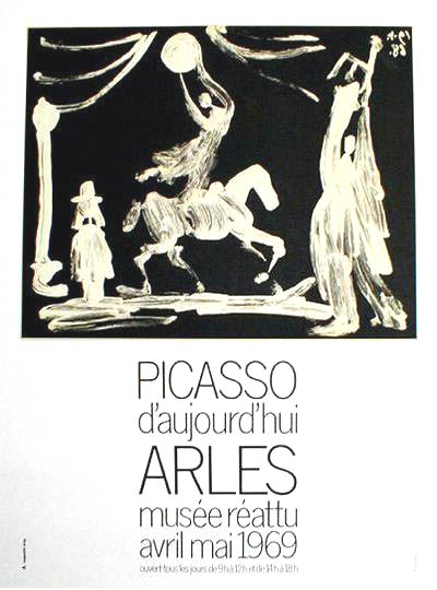 石版画海报。是为了法国,ARLES地区的REATTU美术馆举行的“毕加索的当下展”的通知而制作的。制作数量1000部。由巴黎,Mourlot工作室制作。